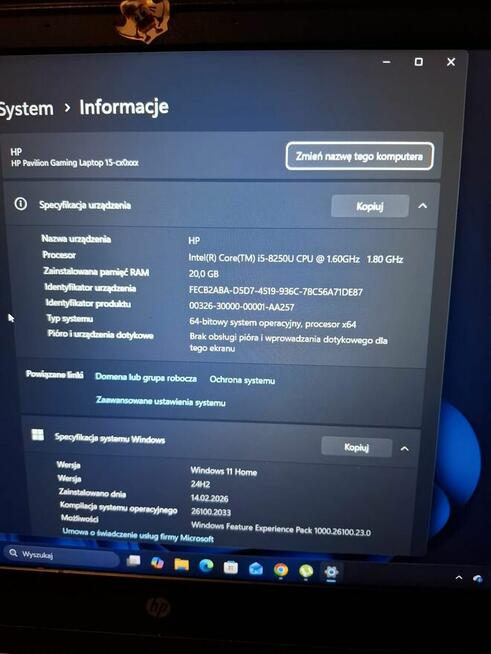 Sprawny bateria trzyma 4 godziny, nie grzeje się, zasilacz w zestawie. Laptop hp gaming 15. Parametry jak na zdjęciu